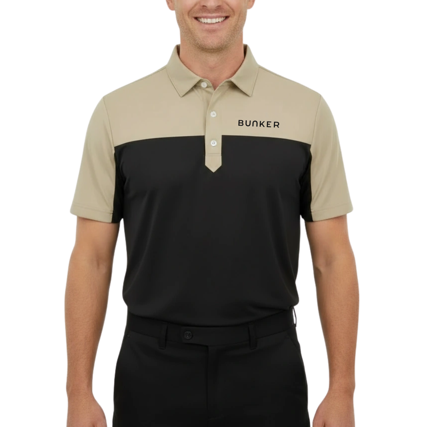 A Desert Dust block sweeps cleanly across the chest and sleeves, grounded by a Black lower body for contrast and depth. A colour story that’s understated yet striking - perfectly balanced for on and off the course.