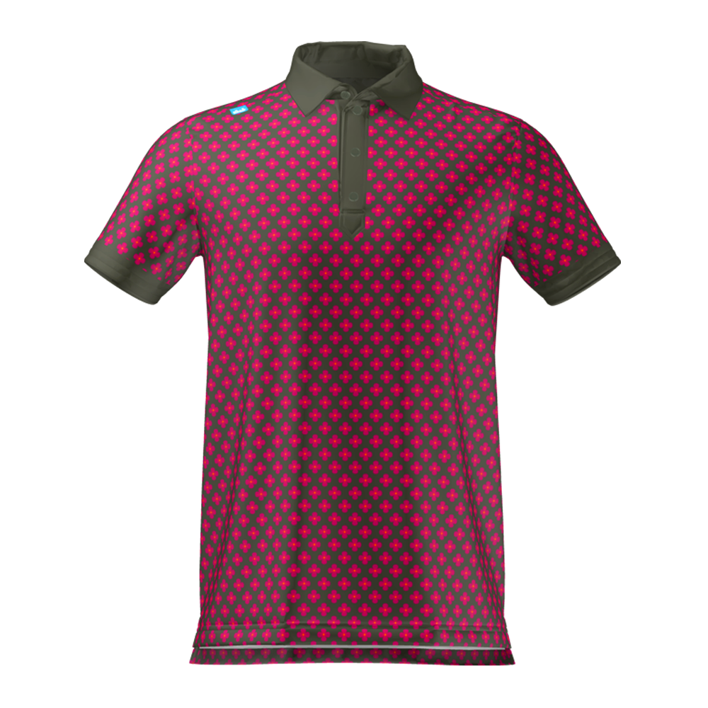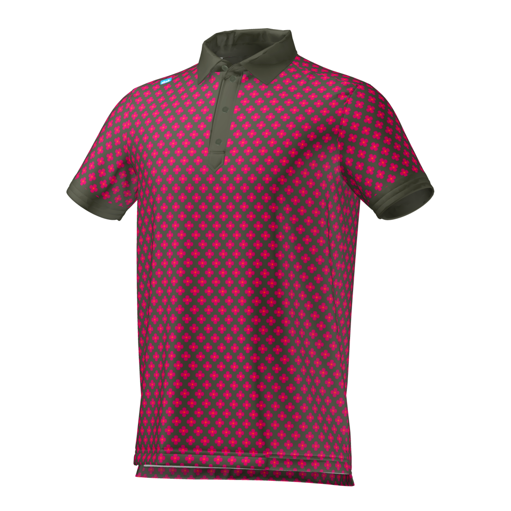 The CMax Tessaro in Khaki is a refined twist on our all-over floral. A soft khaki base is layered with a pink flower motif that feels understated and modern. The matching khaki collar and placket keep the look tonal and elevated. Finished with our Bunker tab in the shoulder seam for minimal branding.