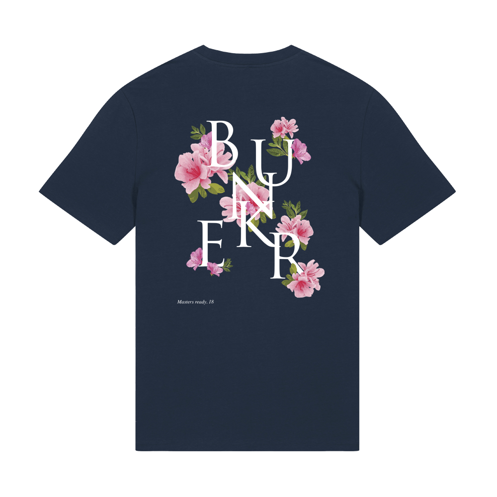 Finished with a clean Bunker logo on the chest and a large Azalea graphic across the back, creating a balanced contrast between subtle front detail and a more expressive rear design.