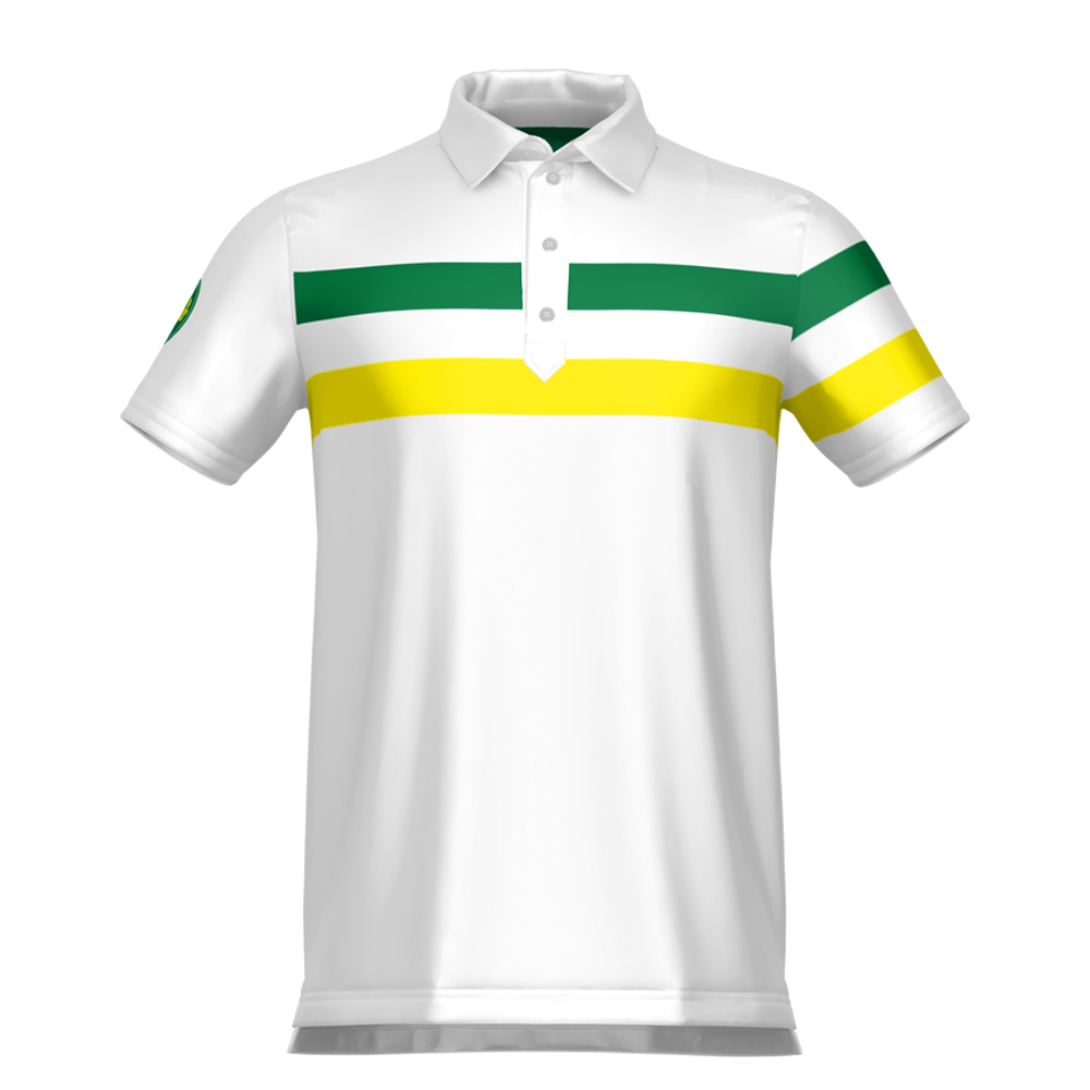 Special collection for Augusta - the start of the season. The CMax Stride includes sharp horizontal stripes in green and yellow on a sharp white base, a fashion forward design. Bunker sleeve badge for the finishing touch. Now just find a green jacket...