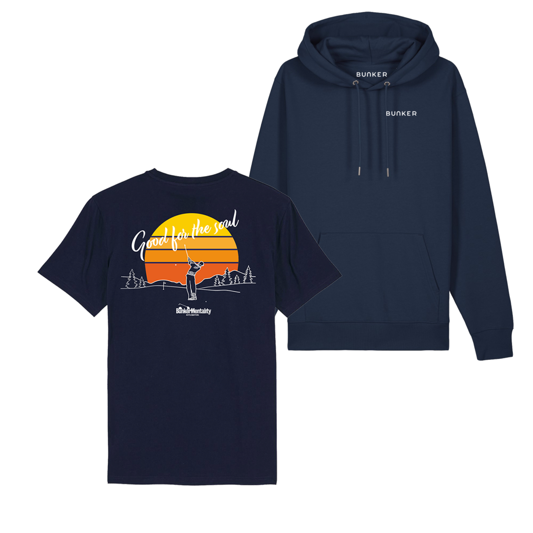 Tonal trims and discreet Bunker branding at the chest and back neck. Match with any t shirt, but we suggest the Best selling Navy Good for the Soul T Shirt to give a perfect combination on and off the course.