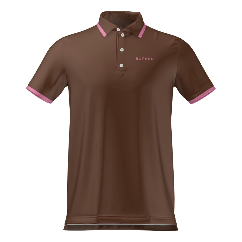 Chocolate forms a rich, grounded base, finished with pink tipping at the collar and cuffs for a sharp contrast detail. Distinctive but controlled, it pairs well with stone, khaki and darker base pieces.